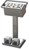 Les machines standard sont gérées par l’intermédiaire d’un pupitre qui assure la variation de la position des galets formeurs et par une double pédale qui commande l'avance et le recul du profilé.